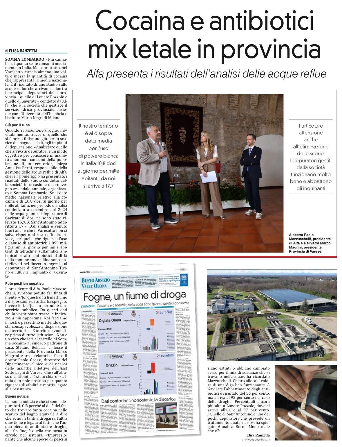 Troppa cocaina e antibiotici nelle acque delle provincia di Varese